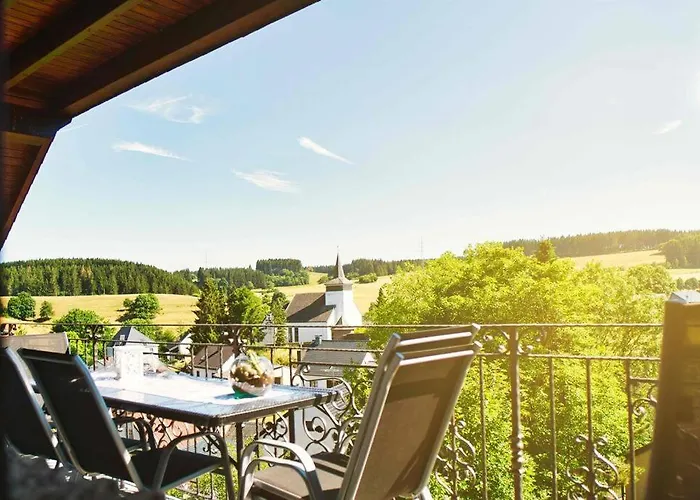 Ferienwohnung Waldblick In Der Eifel van 130 m^2 heeft een terras en ligt op 25 minuten lopen van het Eifelpark Kronenburger See. Bij het appartement is wifi en privé parkeergelegenheid beschikbaar.